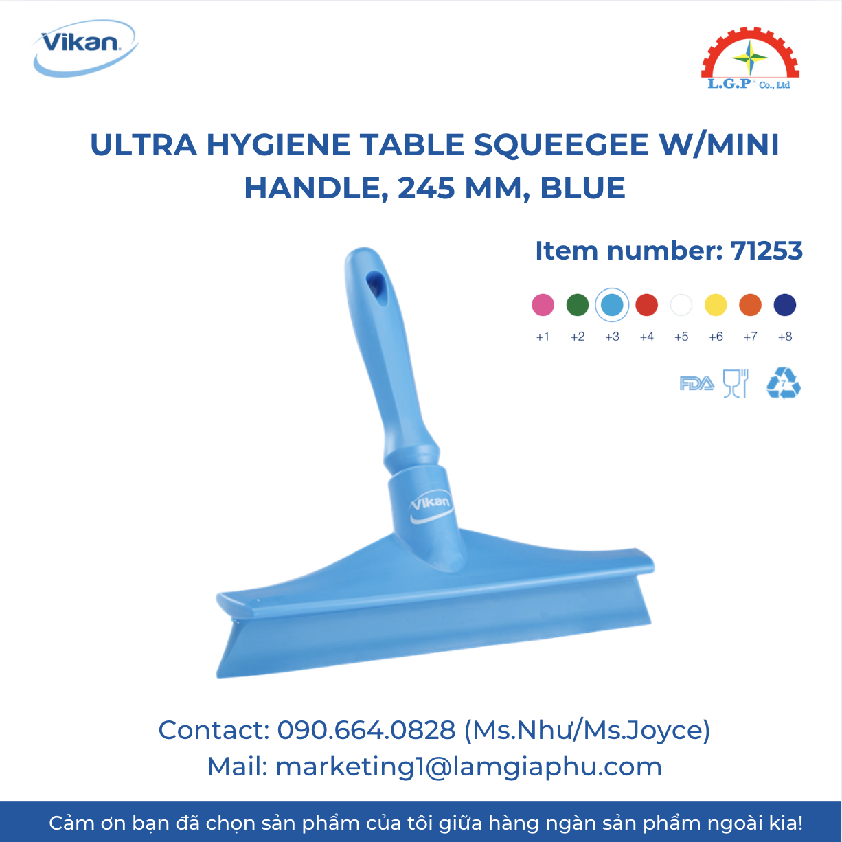 LGP Co., Ltd – Chúng tôi cung cấp Bàn chải gạt nước Vikan 71253, 245mm, nổi tiếng về chất lượng và hiệu suất vượt trội trên thị trường. Sản phẩm của chúng tôi được khách hàng đánh giá cao về độ tin cậy và chất lượng tiêu chuẩn. Các sản phẩm được kiểm tra cẩn thận, mua từ các nguồn uy tín và có nhu cầu cao. Chúng tôi cung cấp trên toàn quốc với giá cả cạnh tranh. Ngoài ra, chúng tôi còn cung cấp các sản phẩm của các thương hiệu như Silvent, Vikan, Air Torque, Jumo, Yudian,…