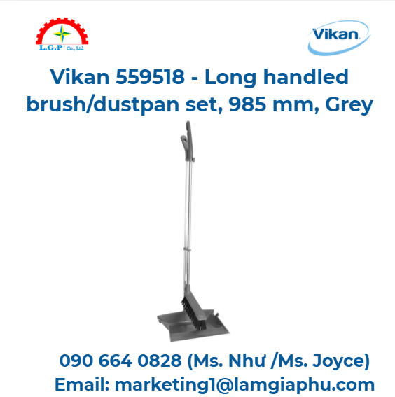 Bộ bàn chải, hốt rác có tay cầm dài Vikan 559518, 985 mm, xám.