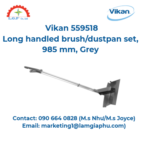 Bộ chổi/hoăng hót rác cán dài Vikan 559518, 985 mm, màu xám