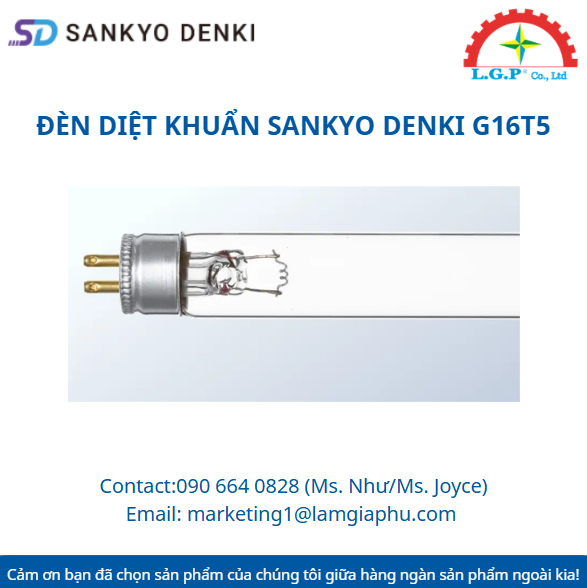 Đèn diệt khuẩn Sankyo denki G16T5 là đèn UV-C hiệu suất cao của Sankyo Denki, thiết kế T5 nhỏ gọn nhưng cho khả năng phát tia 253.7 nm mạnh mẽ – bước sóng tối ưu để tiêu diệt vi khuẩn, virus và nấm mốc. Với công suất 16W và chiều dài 287 mm, đèn cân bằng tốt giữa hiệu suất – kích thước – độ ổn định, rất phù hợp cho các hệ thống khử trùng cần hoạt động liên tục.