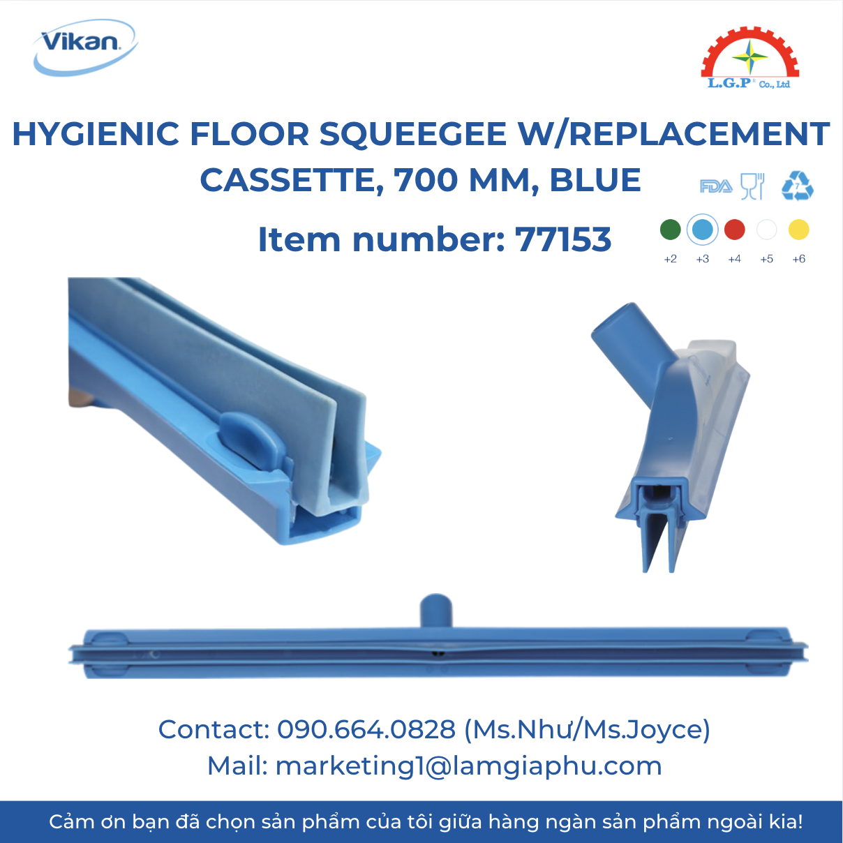 Item number: 77153 – Hygienic Floor Squeegee w/replacement cassette, 700 mm, Blue.