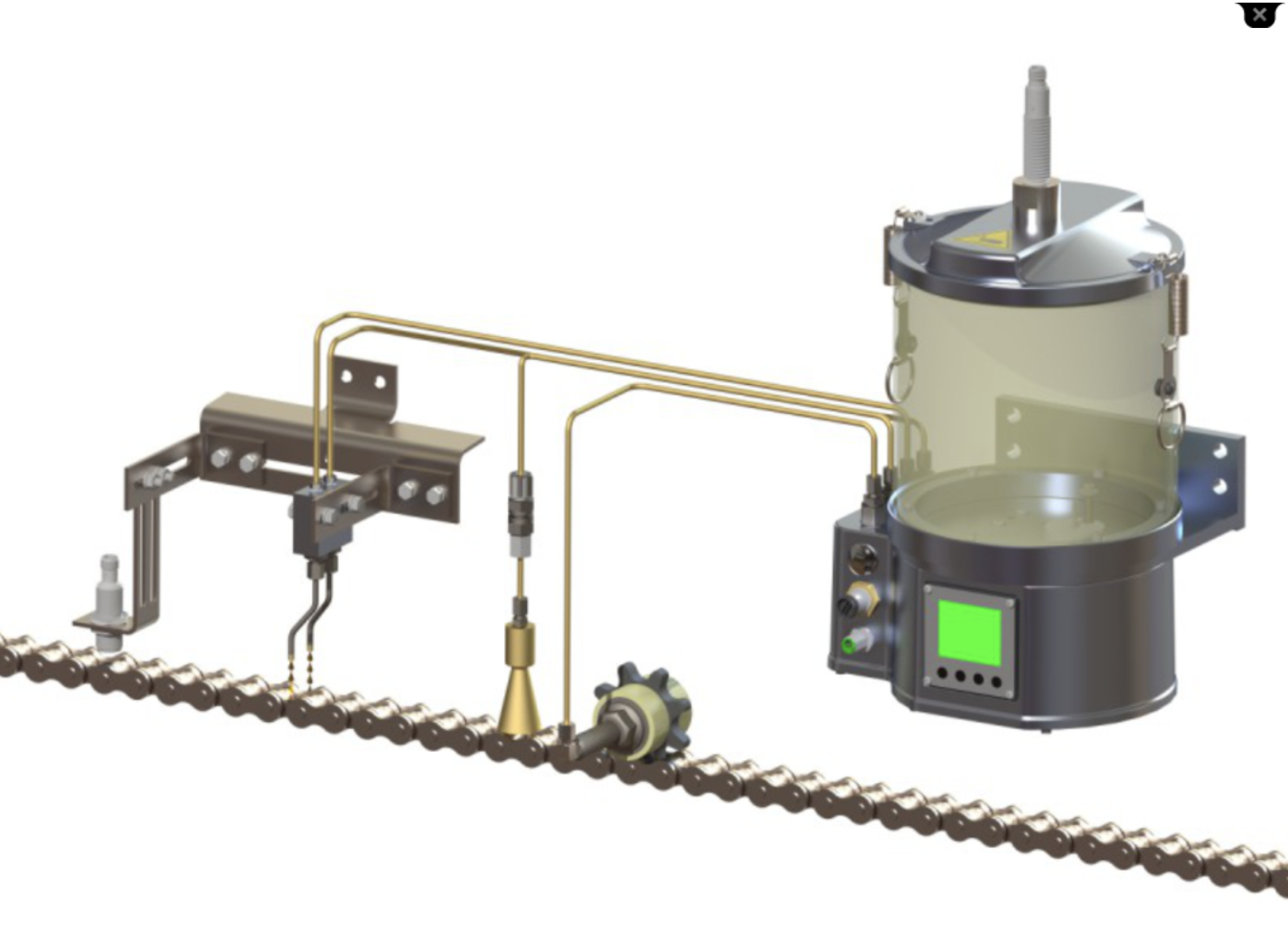 Hệ thống bôi trơn xích GMC-A nhỏ gọn là giải pháp hoàn chỉnh có thể sử dụng cho hầu hết mọi ứng dụng xích. Thời điểm bơm phù hợp với đường chạy của xích khiến hệ thống đặc biệt phù hợp để bôi trơn nhỏ giọt không tiếp xúc cho các mắt xích.