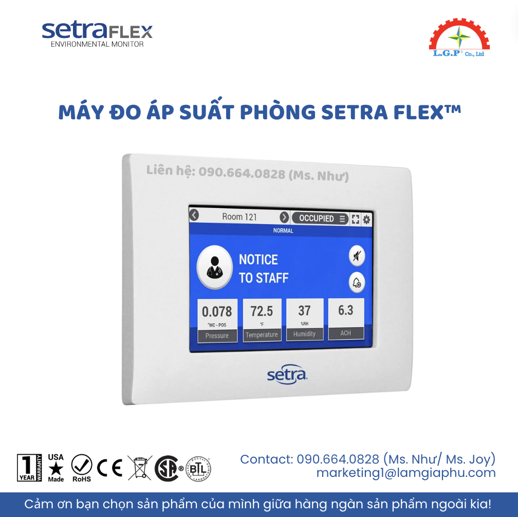 Máy đo áp suất phòng Setra là thiết bị hỗ trợ 3 phòng, giám sát tối đa 6 thông số cho mỗi phòng. Hơn cả một thiết bị theo dõi áp suất phòng. Bạn có thể điều chỉnh thêm nhiều thông số có thể bao gồm độ ẩm, nhiệt độ, tỷ lệ sử dụng, số lượng hạt, trạng thái cửa, tốc độ không khí và nhiều yếu tố môi trường khác.