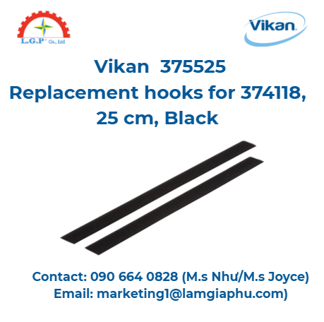 Móc thay thế Vikan 375525, dài 25 cm, màu đen, được thiết kế để thay thế cho khung lau nhà Vikan 374118. Sản phẩm bền chắc, dễ lắp ráp và đảm bảo hiệu quả vệ sinh, giúp duy trì khả năng làm sạch chuyên nghiệp mà không cần thay toàn bộ khung lau.