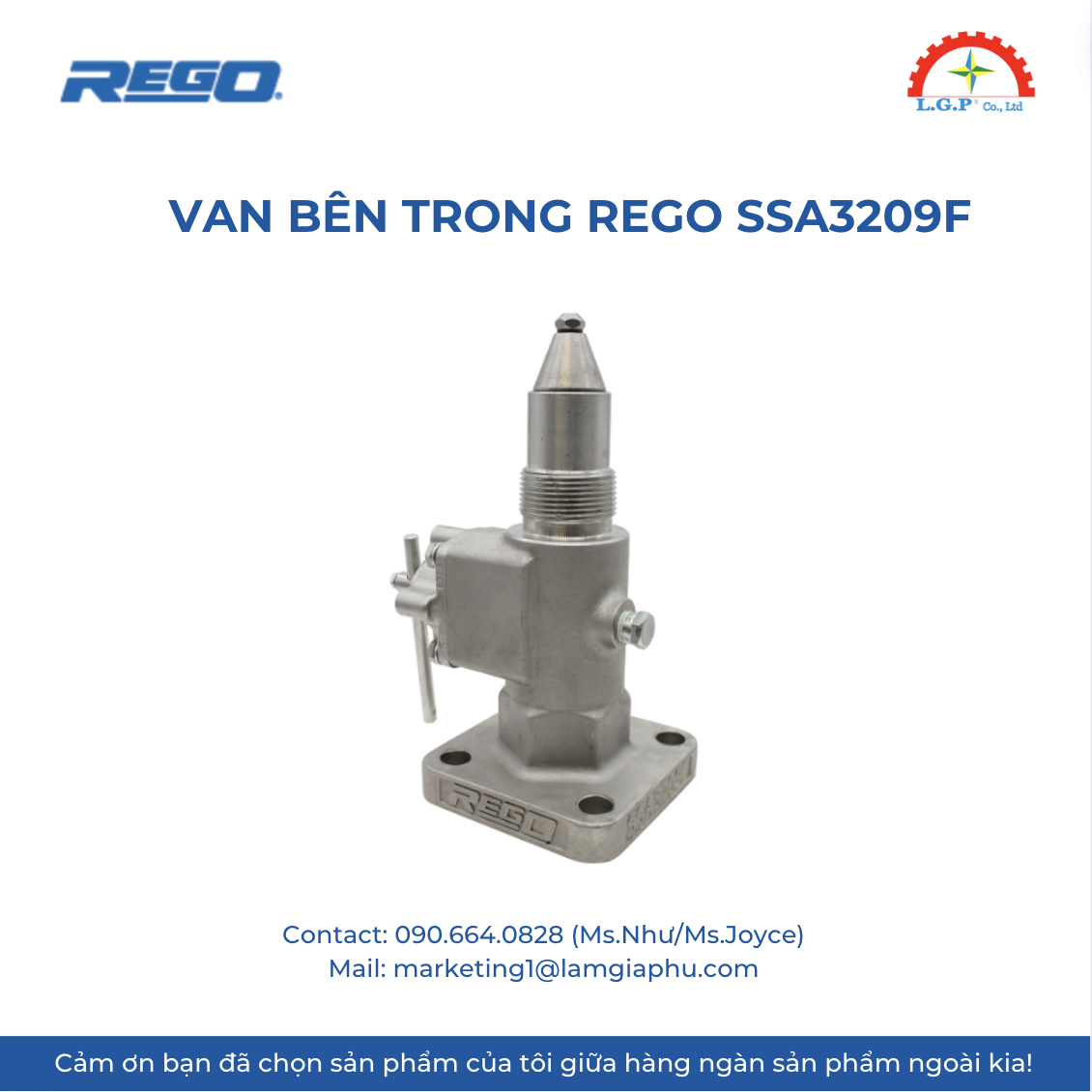 LGP Co., Ltd – Chúng tôi cung cấp Van bên trong Rego SSA3209F, nổi tiếng về chất lượng và hiệu suất vượt trội trên thị trường. Sản phẩm của chúng tôi được khách hàng đánh giá cao về độ tin cậy và chất lượng tiêu chuẩn. Các sản phẩm được kiểm tra cẩn thận, mua từ các nguồn uy tín và có nhu cầu cao. Chúng tôi cung cấp trên toàn quốc với giá cả cạnh tranh. Ngoài ra, chúng tôi còn cung cấp các sản phẩm của các thương hiệu như Silvent, Vikan, Air Torque, Jumo, Yudian,…